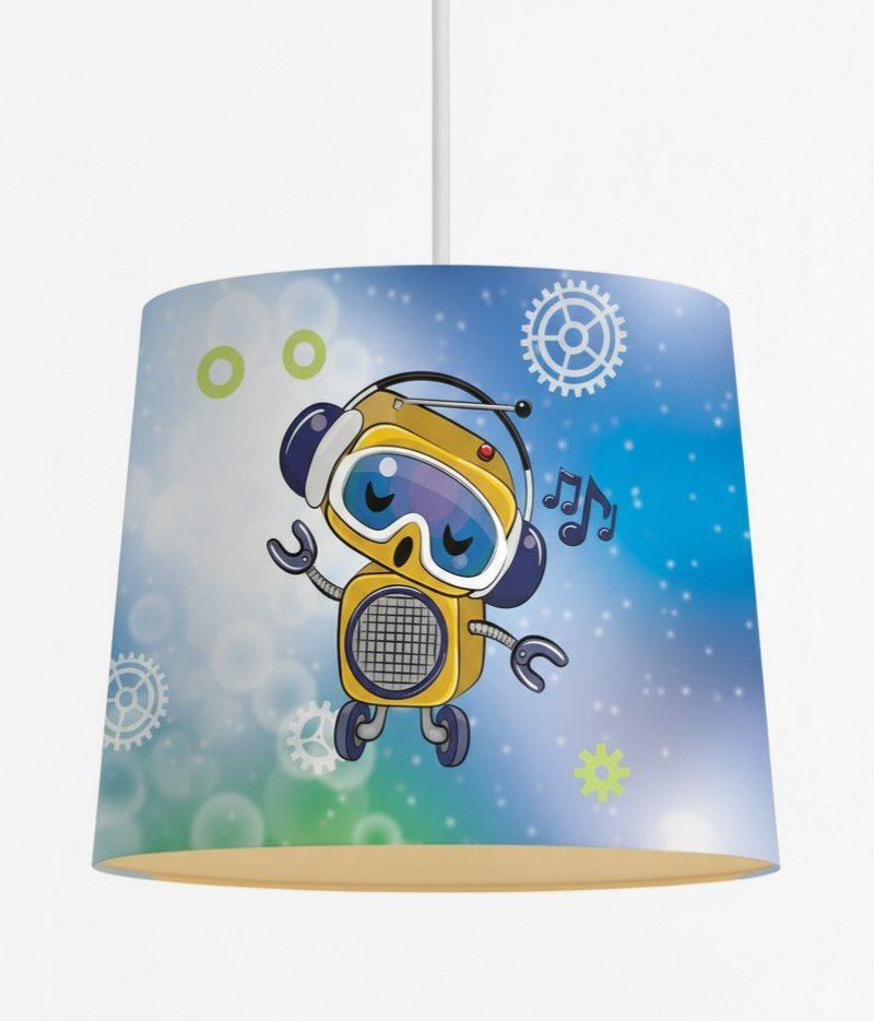 لوستر «ربات موسیقی» با طراحی فانتزی و رنگهای شاد، انتخابی عالی برای اتاق کودک است. این طرح بامزه، رباتی با هدفون را نشان میدهد که در میان نتهای موسیقی غرق شده و فضایی پرانرژی و خلاقانه میسازد. پسزمینه آبی–سبز با المانهای فانتزی مثل چرخدنده، جذابیت طرح را بیشتر کرده و حس بازی و تکنولوژی را به اتاق کودک میآورد.این لوستر سقفی با نور ملایم خود، علاوه بر روشنایی، به دکوراسیون اتاق کودک جلوهای مدرن و متفاوت میبخشد.